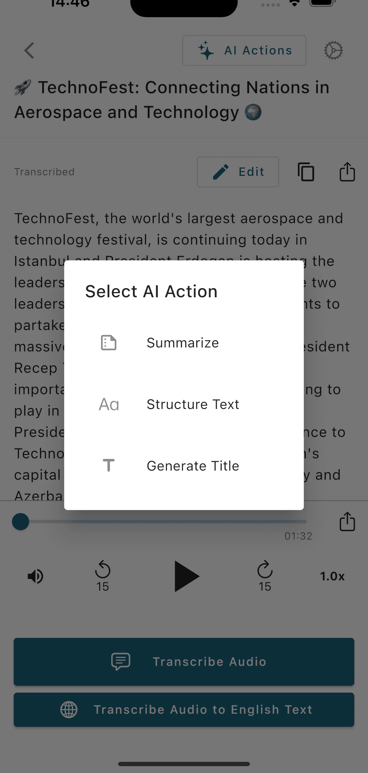 Summarize, structure or generate title automatically for your text with AI.